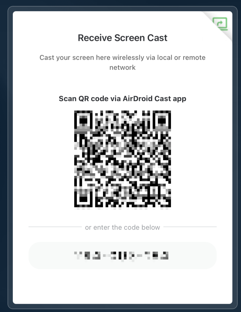 On your computer: Open your browser and visit webcast.airdroid.com. A QR code and a 9-digit cast code will appear on the screen.