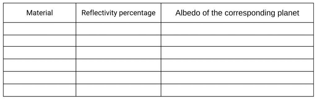 Once all measurements are complete, compare your values to the planetary albedo table from earlier.